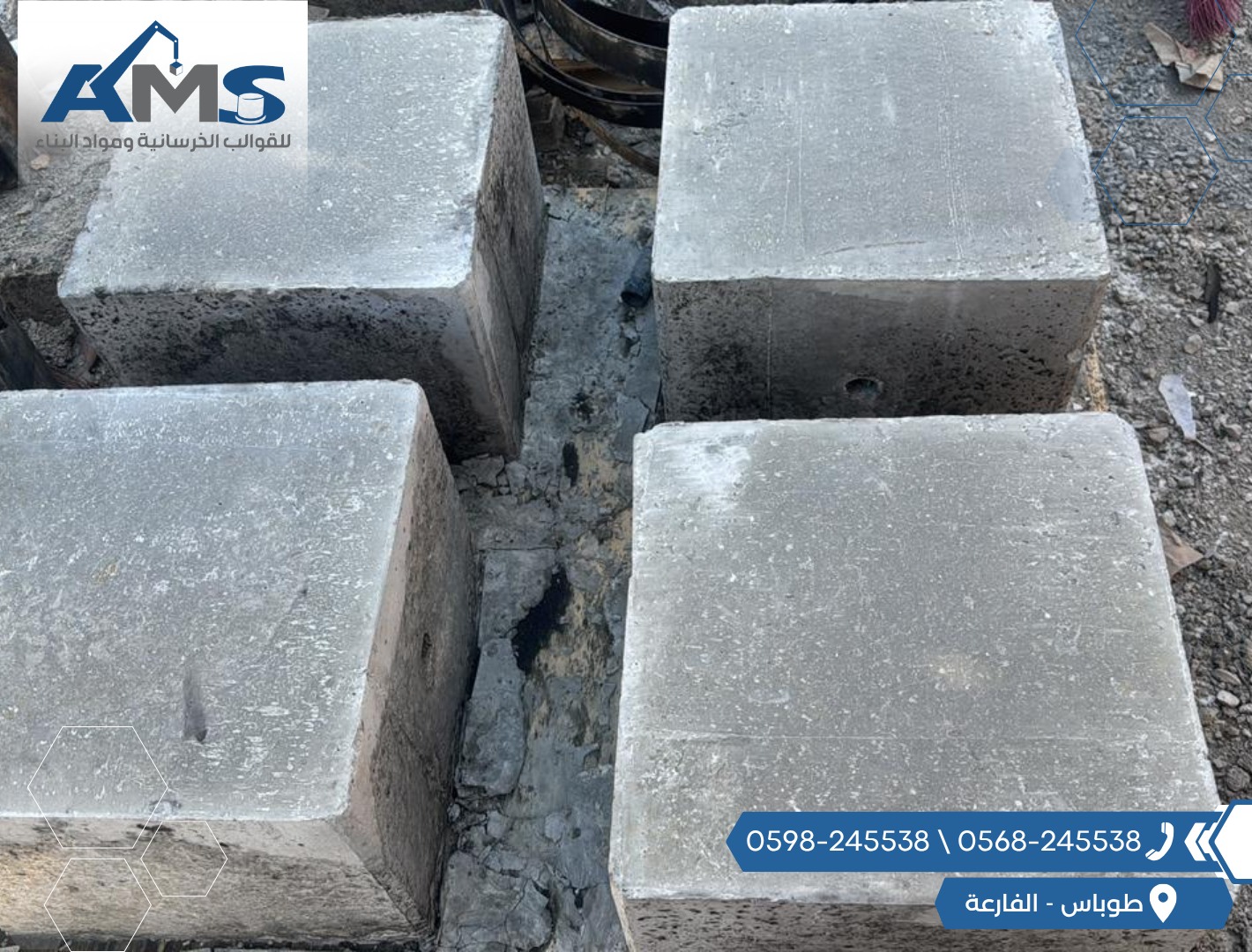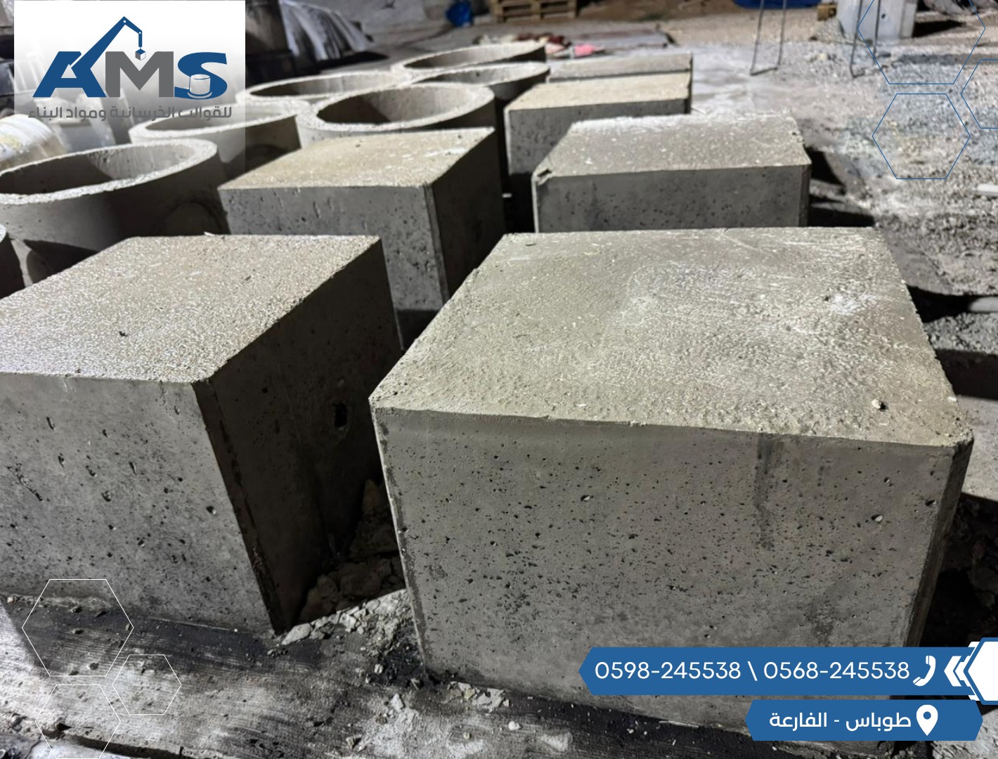 مختلف الاحجام . 50 سم . 60 سم . 80 سم- مكعبات إسمنتية متينة ودقيقة الأبعاد